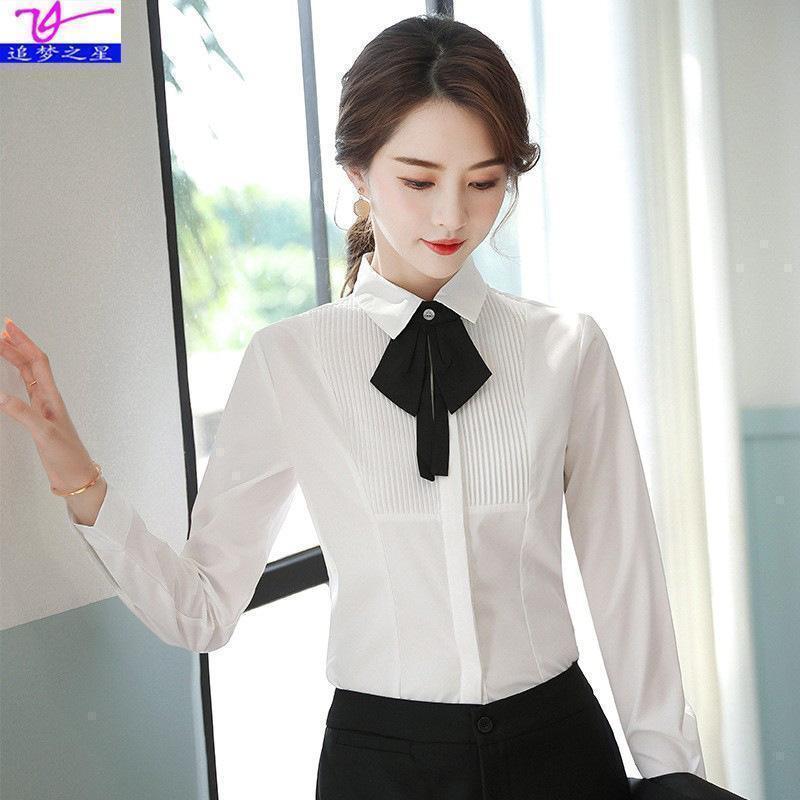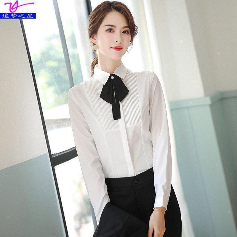ブラウス 長袖 シフォン レディース ボウタイ リボン(ホワイト, L)