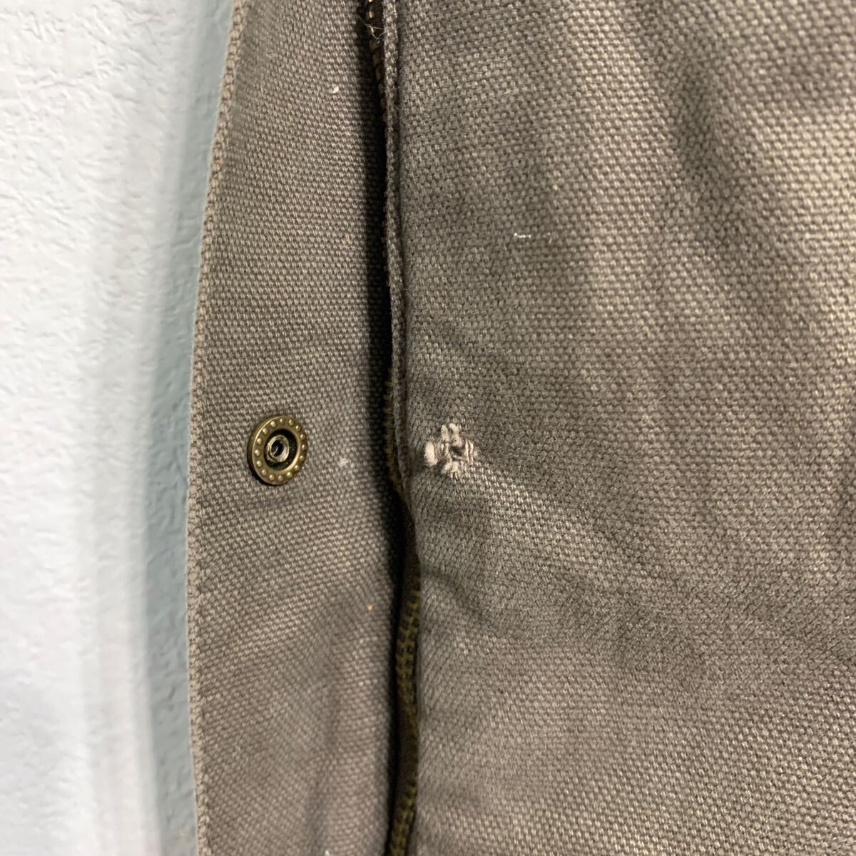 前身頃、後身頃に汚れ、左足の第3スナップボタンに欠損が有ります。