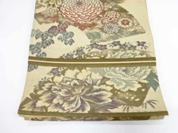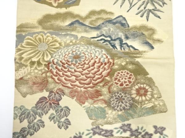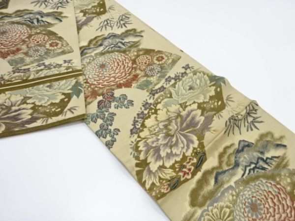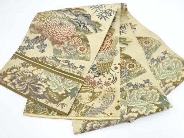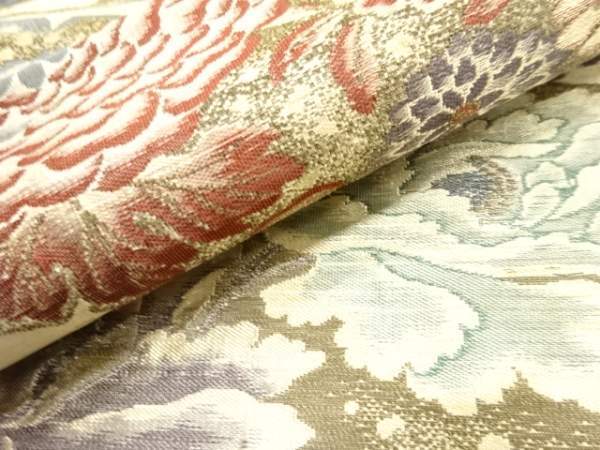 ys7302218; 破れ地紙に花模様織り出し丸帯(材料)【アンティーク】【着】