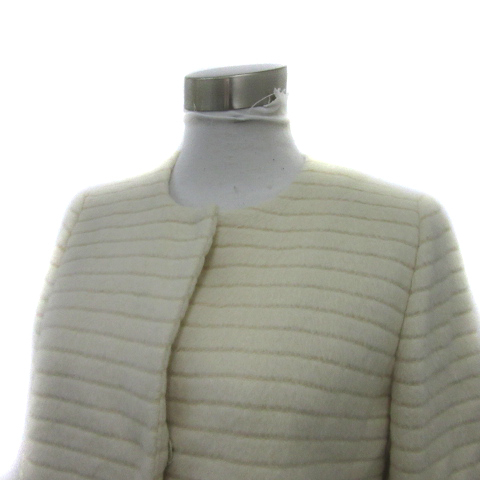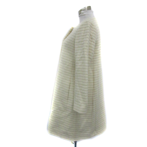ジュエルチェンジズ Jewel Changes アローズ ノーカラーコート ロング丈 ラウンドネック アンゴラ 38 M オフホワイト /YS8 レディース