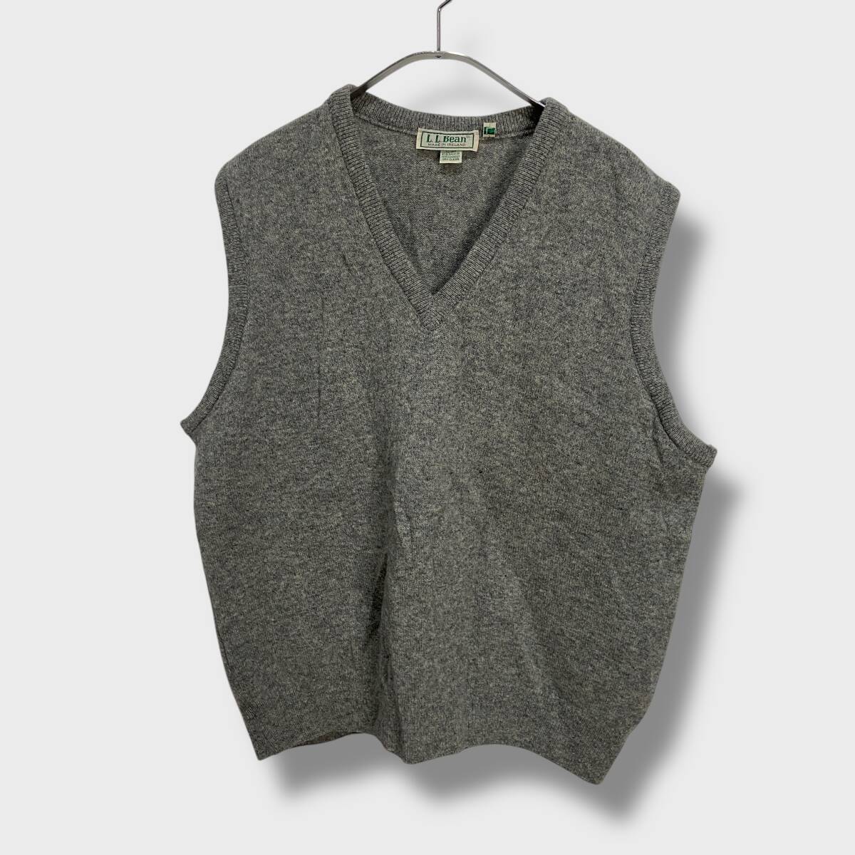 送料無料☆L.L.Bean☆エルエルビーン☆80s☆アイルランド製☆Vネックベスト☆無地☆グレー☆L☆B25M