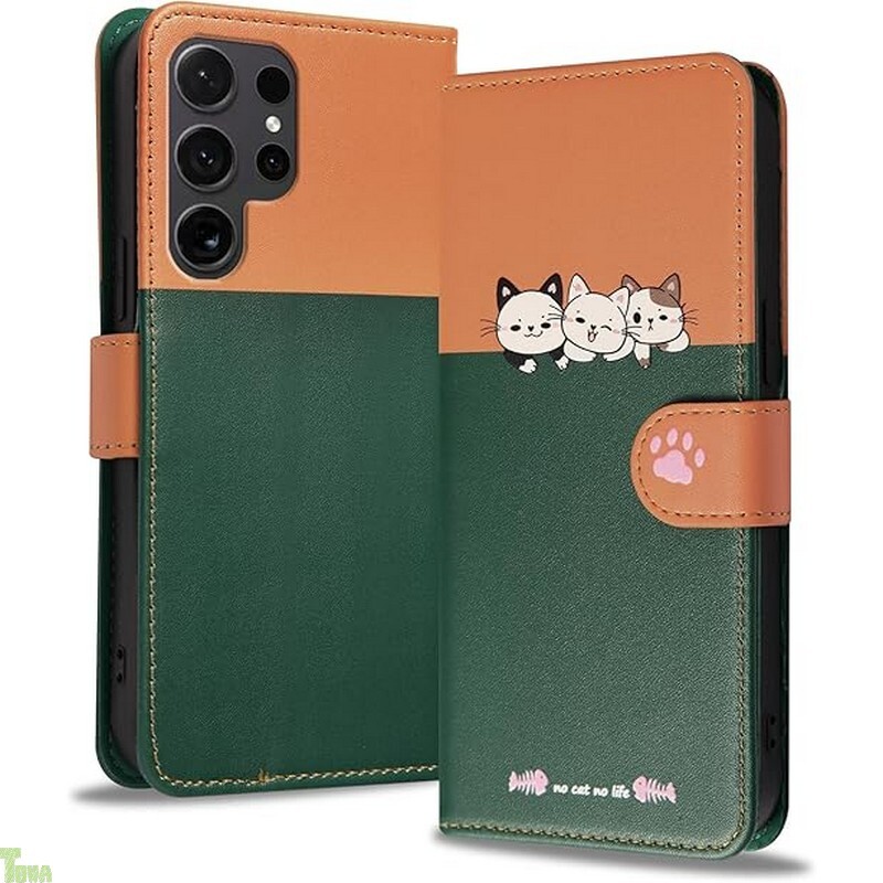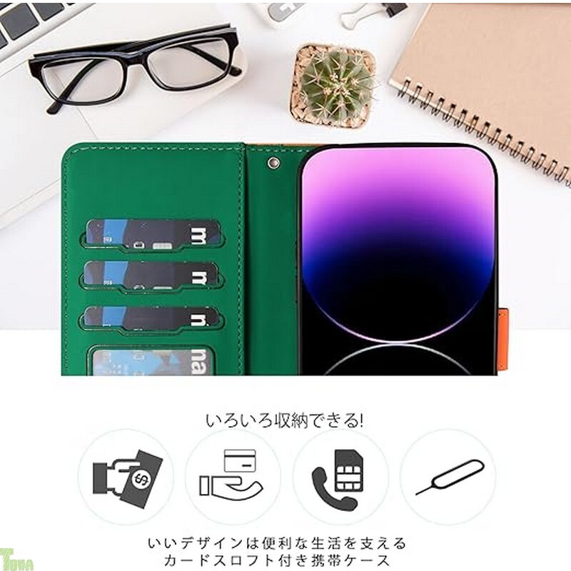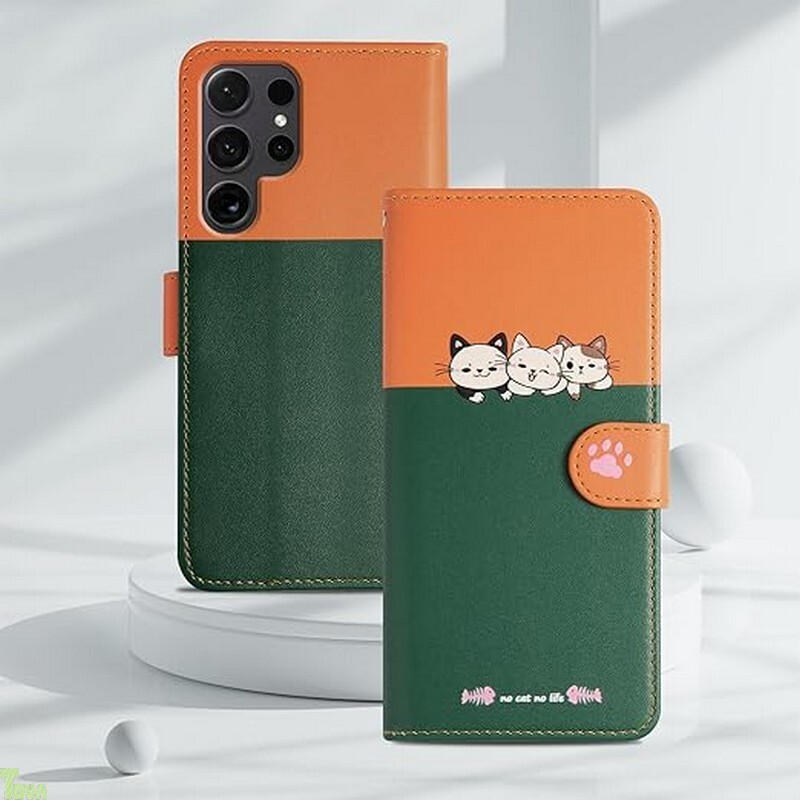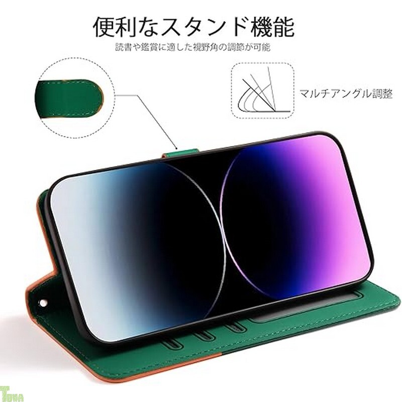 オレンジ + ダークグリーン 手帳型 高品質 PUレザー ギャラクシー galaxy s25 ultra 保護 財布型 スタンド機能 カード収納 ケース カバー