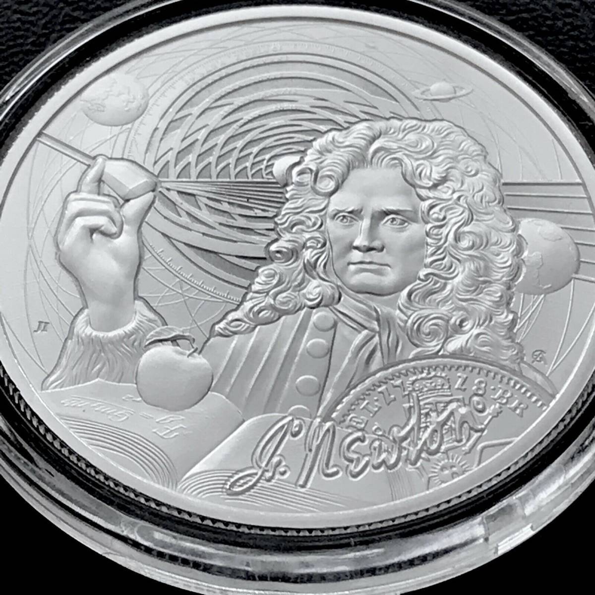 歴史上最も影響力のある数学者、物理学者の一人であるアイザック・ニュートンを記念したコインの人気シリーズ第3弾です。ニュートンの科学のあらゆる面における業績は、人類が最も研究し、高く評価する発見の一つです。