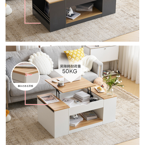 センターテーブル 昇降テーブル 大容量収納 収納付き 幅110CM 北欧風 リビングテーブル ローテーブル組み立て簡単 耐久性抜群【ホワイト】