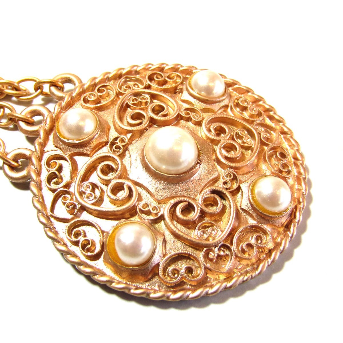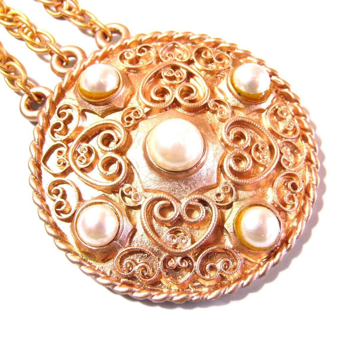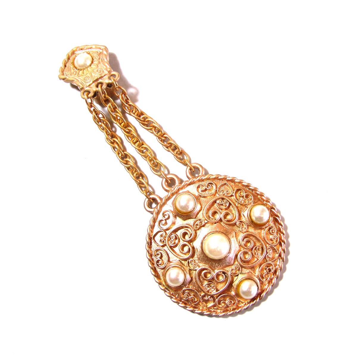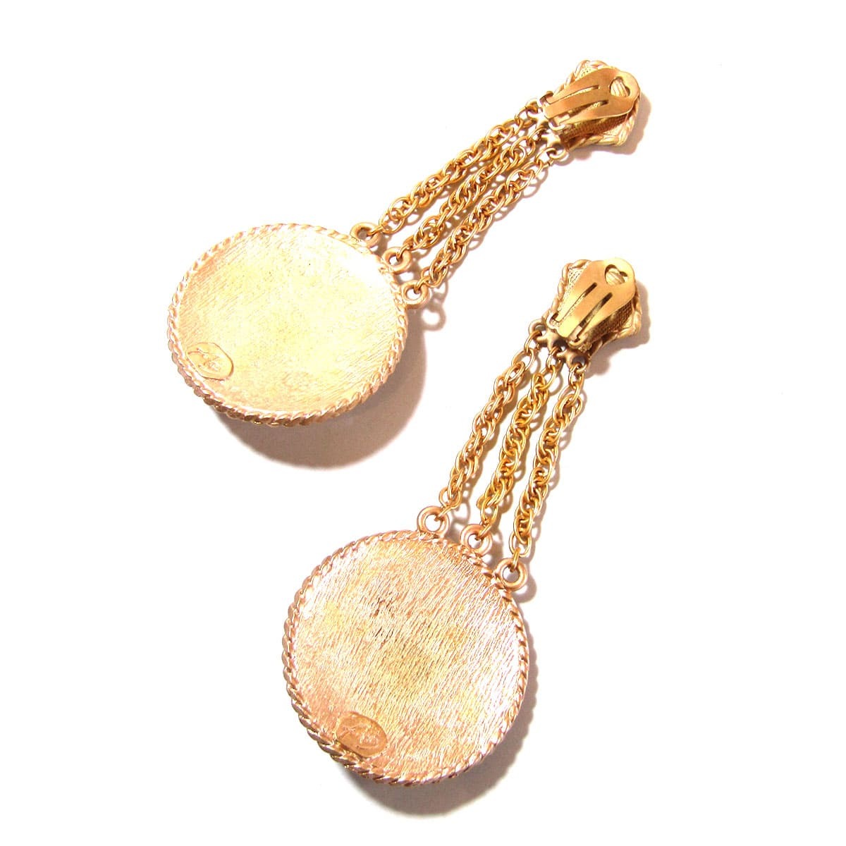Vintage Gold Tone Oriental Design Big Drop Earring