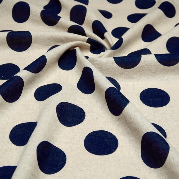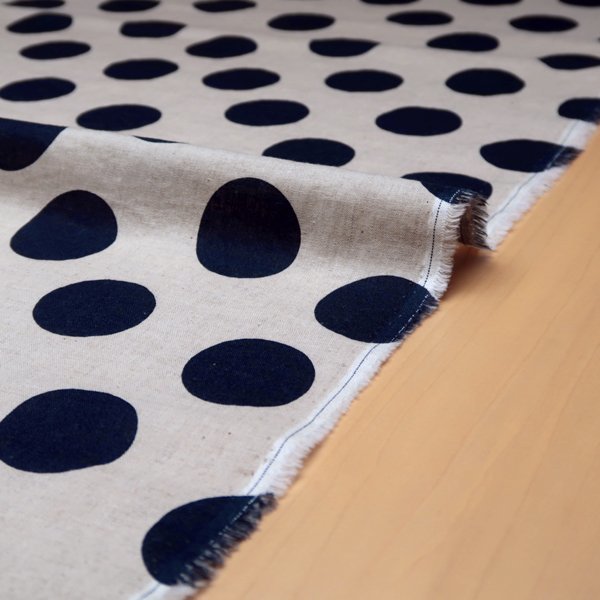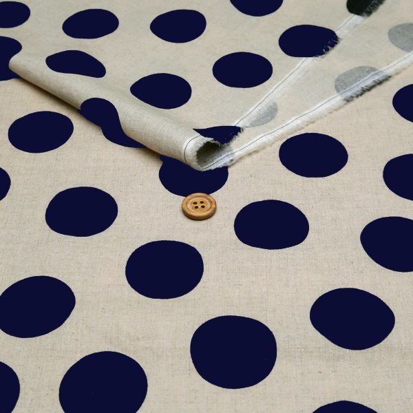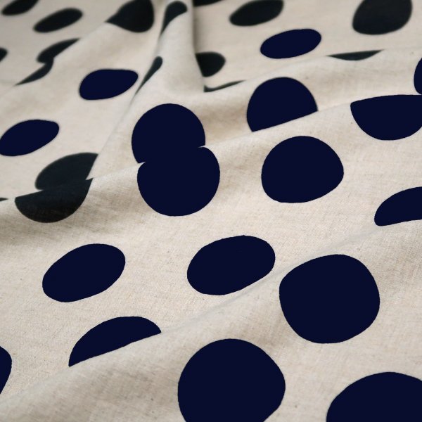 ハーフリネン 綿麻シーチング生地 カス残し 水玉 ドット ネイビー 50cm