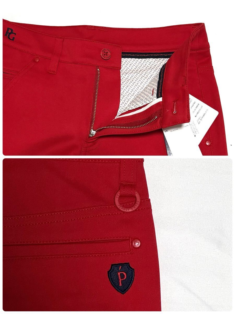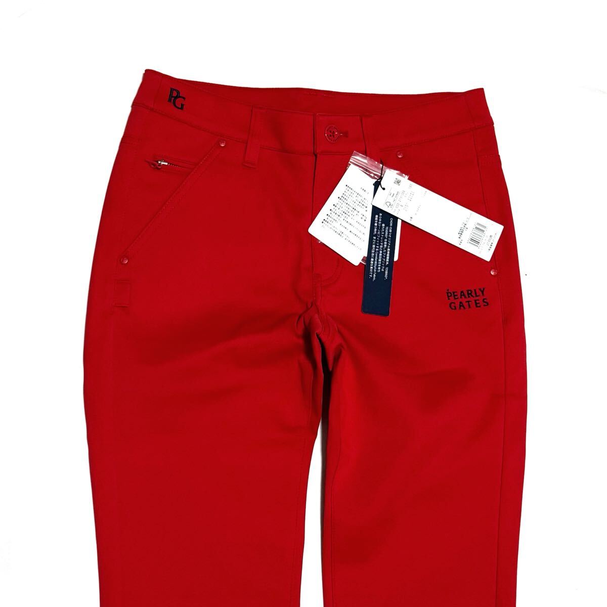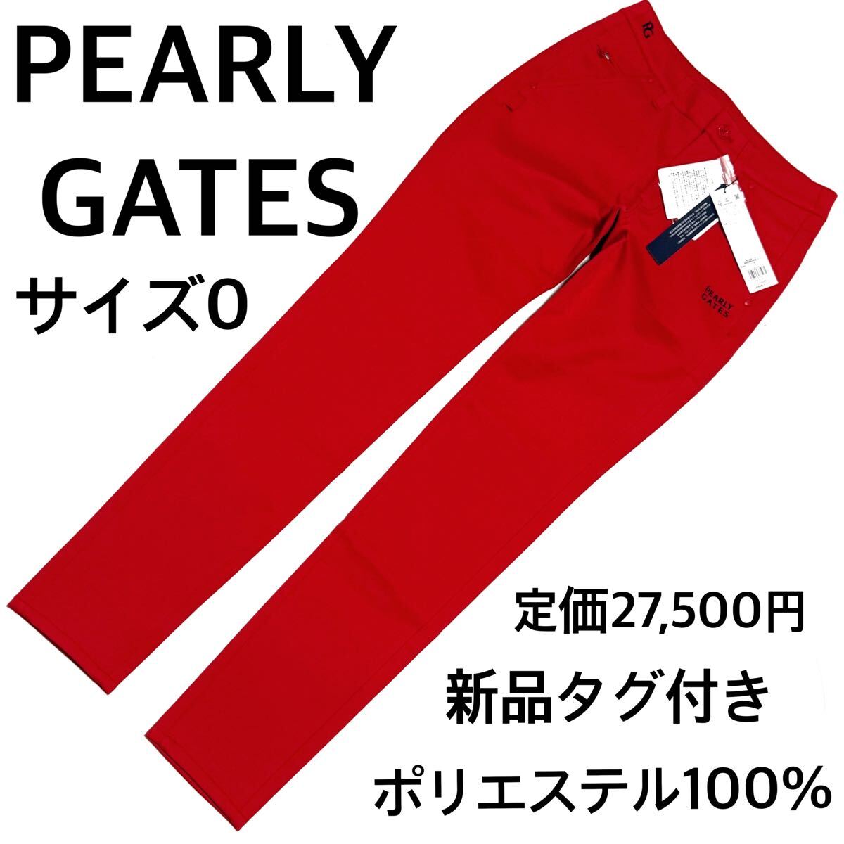 「PEARLY GATESの新品タグ付きレッドパンツ、サイズ0。ポリエステル100%の軽やかな着心地と、定価27,500円相当のプレミアム感。鮮やかなレッドカラーがワンポイントとなり、コーディネートに即アクセント。今だけのお得なチャンスをお見逃しなく!」