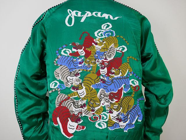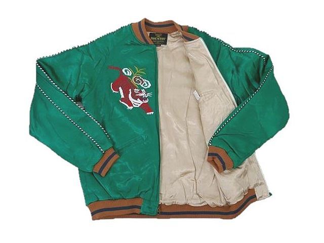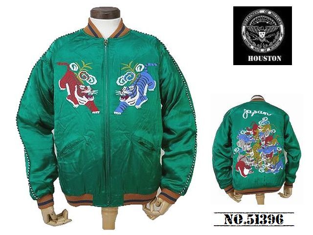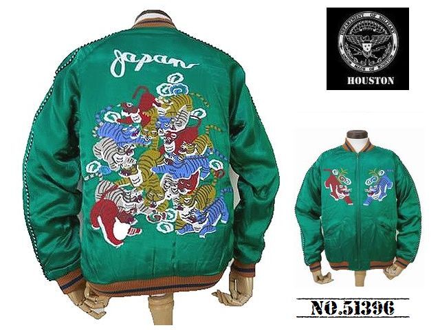 【送料無料 26%OFF】HOUSTON ヒューストン レーヨン スカジャン SOUVENIR JACKET 「百虎柄」 NO51396 GREEN_Mサイズ