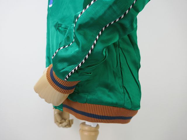 ヴィンテージな風合いを再現した、柔らかく光沢のあるレーヨン素材のスーベニアジャケットです。