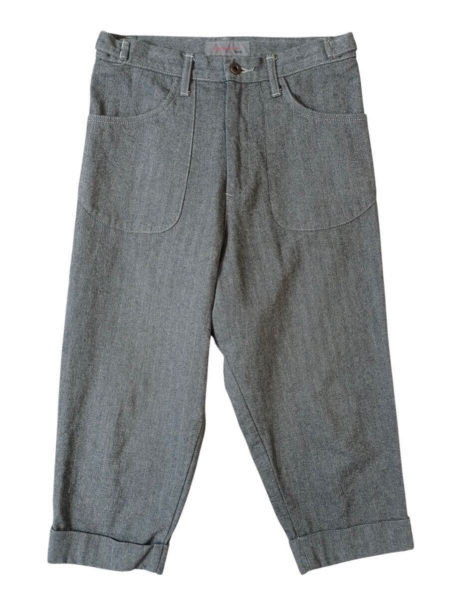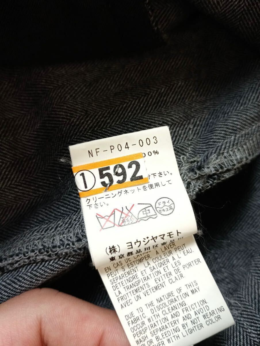 (D) YOHJI YAMAMOTO +NOIR ヨウジヤマモト ヘリンボーン コットン パンツ 1 グレー (ma)