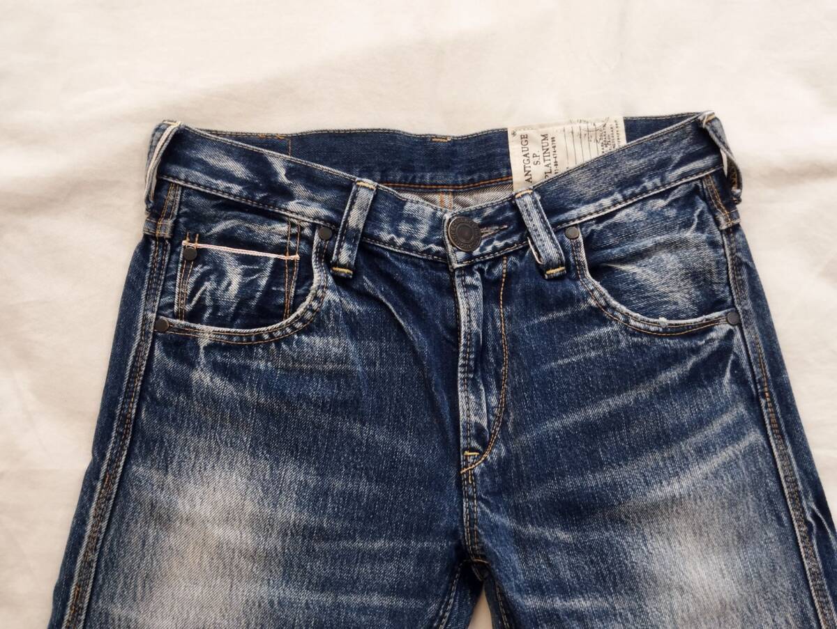 | 商品説明 | ブランド Antigauge  セルビッジジーンズ 状態:USED(使用感ありますが状態いいです) サイズ表記S ウエスト79cm、股下65cm、股上(前24.5cm、後30cm)、腿幅(股から10cmの位置で)25cm、裾幅15.5cm ★あくまで古着であることをご了承ください。 そのため程度の感じ方は個人によって違いがあります。 古着に慣れていない方、神経質な方はご遠慮ください。  |
