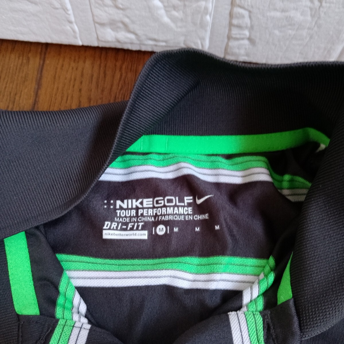 1851【中古】NIKE GOLF ナイキゴルフ ゴルフウェア 半袖 ポロシャツ メンズ サイズ M ドライフィット ダークグレー白緑
