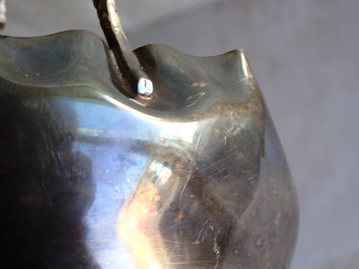 フランスアンティーク ポット ボウル 刻印 シルバープレート シャビー 容器 小物入れ 蚤の市 銀メッキ ハンドル付き ディスプレイ