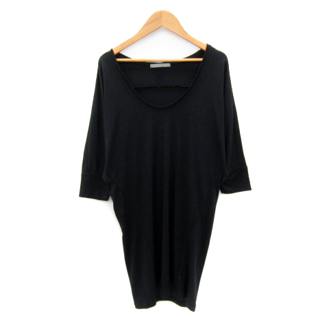 セオリーリュクス theory luxe ワンピース ひざ丈 七分袖 ドルマンスリーブ ラウンドネック 無地 38 M 黒 ブラック /SY37 レディース