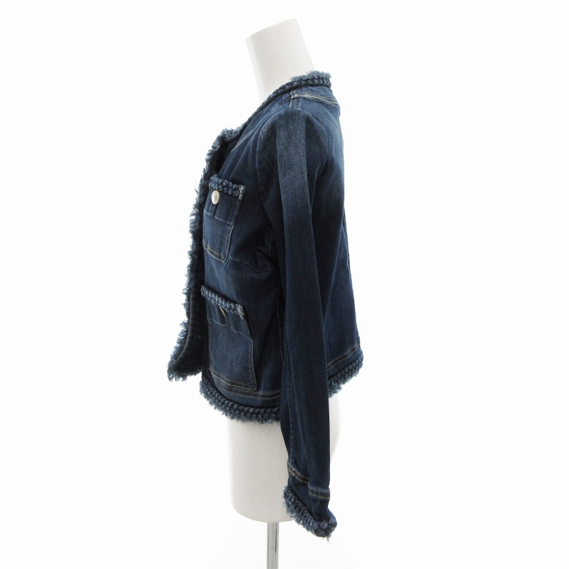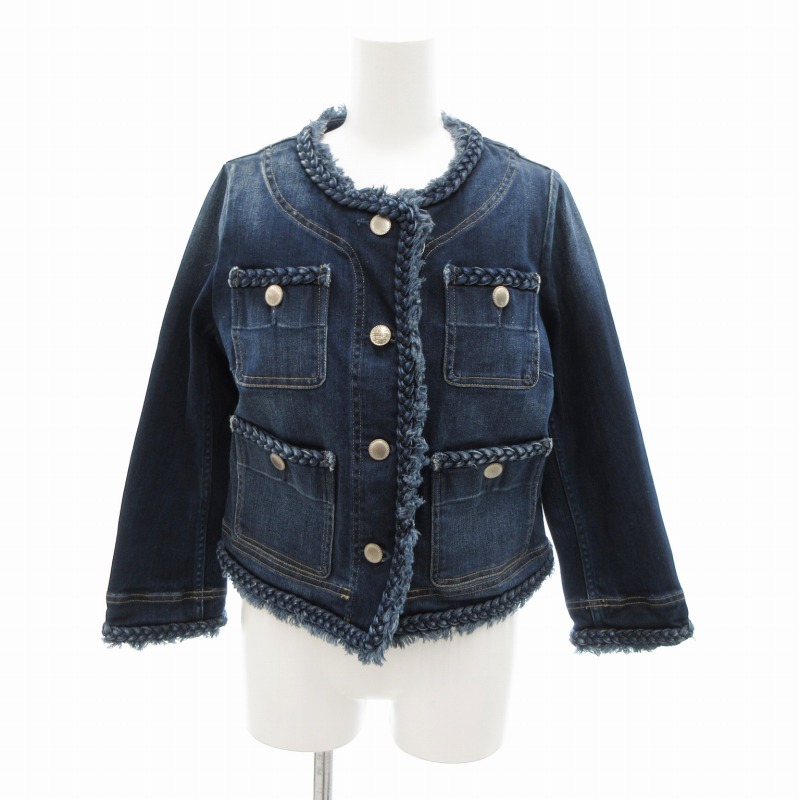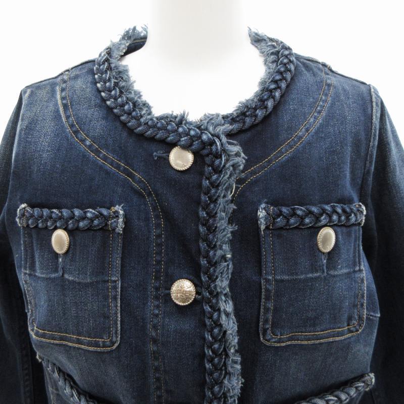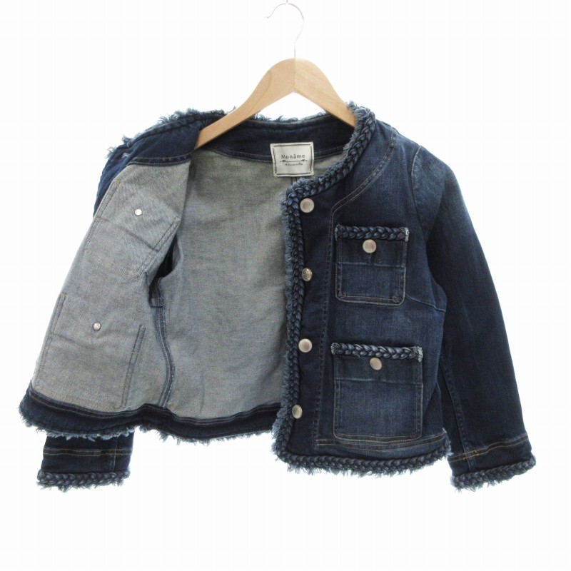 モナーム Moname デニムジャケット Gジャン 編み込み フリンジ ショート丈 M インディゴブルー /HO△ 0322 ■GY39 レディース