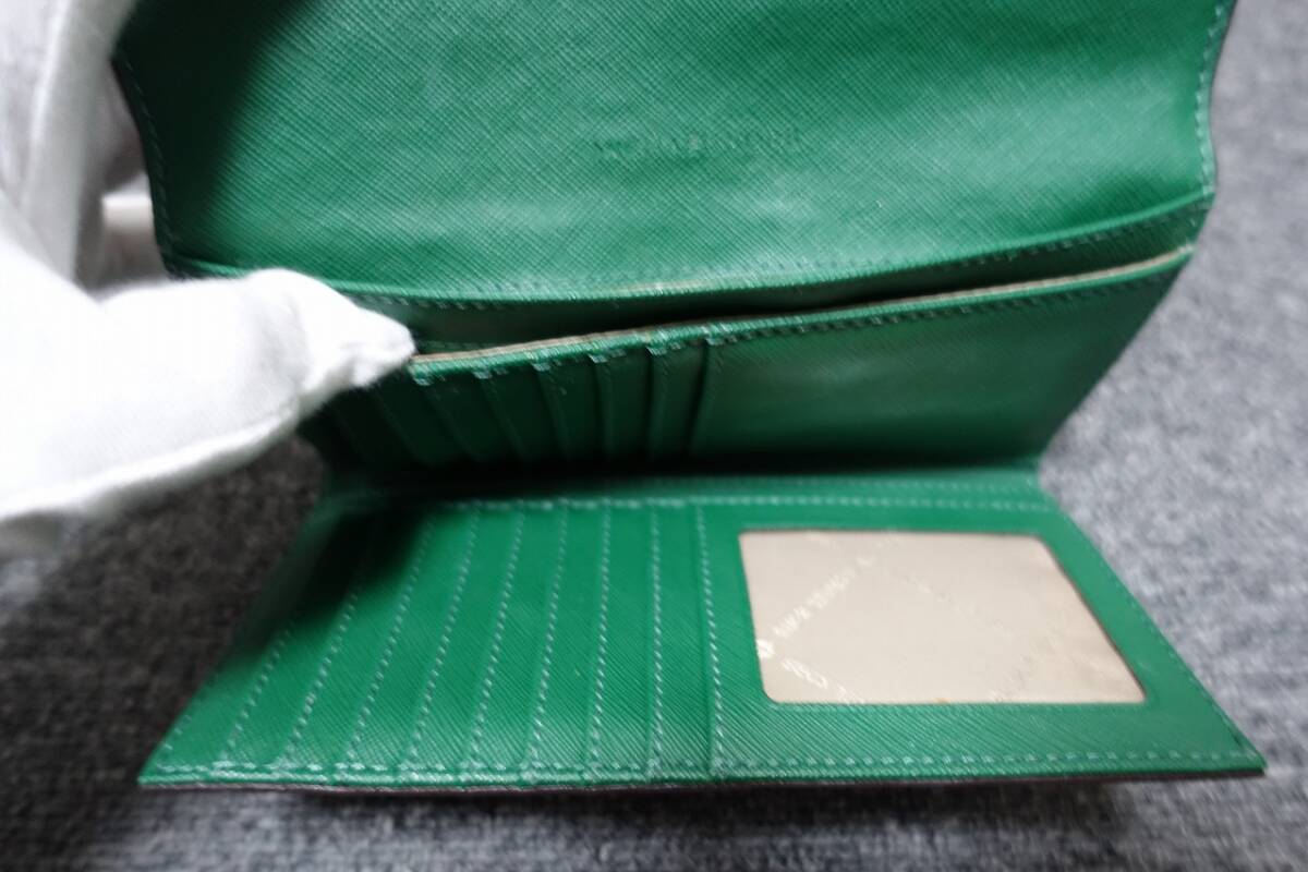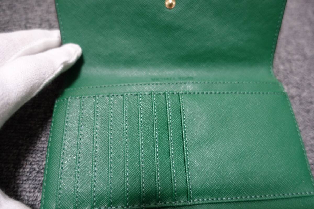 | ★商品説明★ | MICHAEL KORS 革製折財布 新古品 カード入多数モデルになります。 MICHAEL KORS マイケル・コース の緑色の革製折り財布となります。 一応小銭入れは付いていますが、カードが多数入れられる便利なお財布です。 身分証なども入れられる透明窓のカードポケットも一カ所付いています。 ビジネス、プライベートどちらでも使用できます。 店頭展示のストック品で、多少の汚れはありますが未使用品となります。 商品はクリックポスト185円にて発送します。 よろしくお願いします。 |