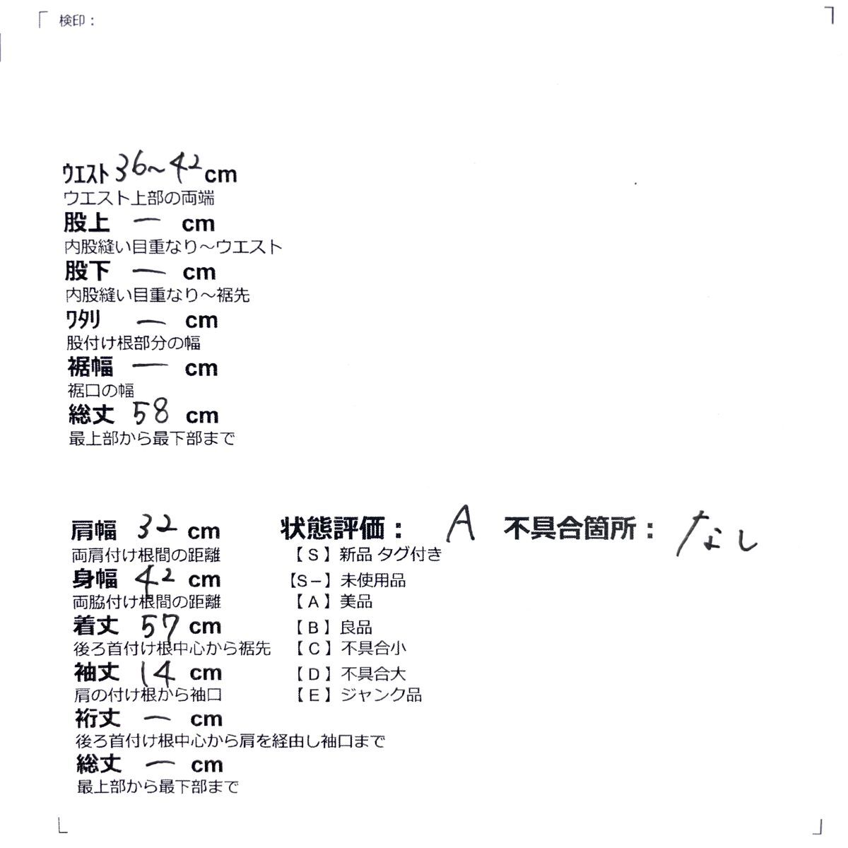 S-・・・未使用品