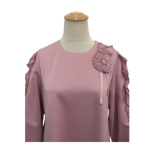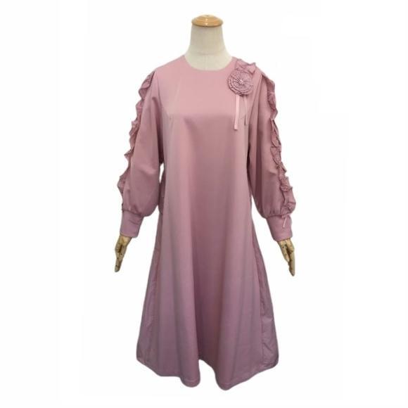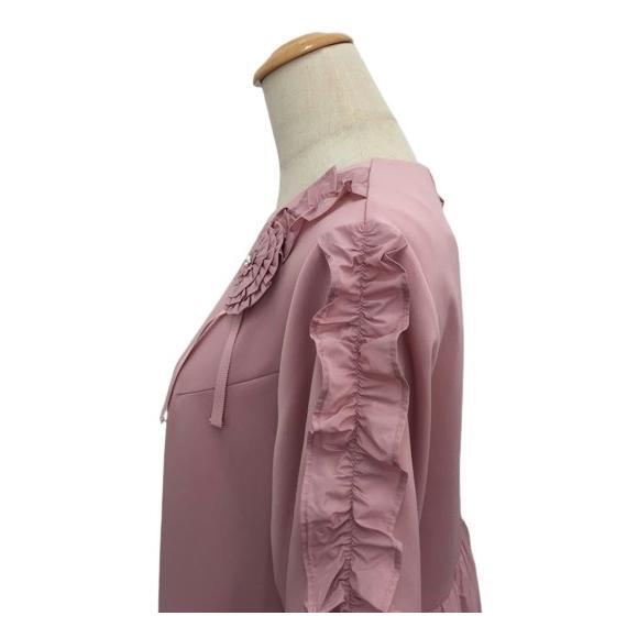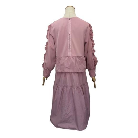 スーパービューティー 44 ワンピース袖フリル ダンボールニット タフタ 2426011 ピンク LL 2024/2025年秋冬 オーラボー 大人かわいい