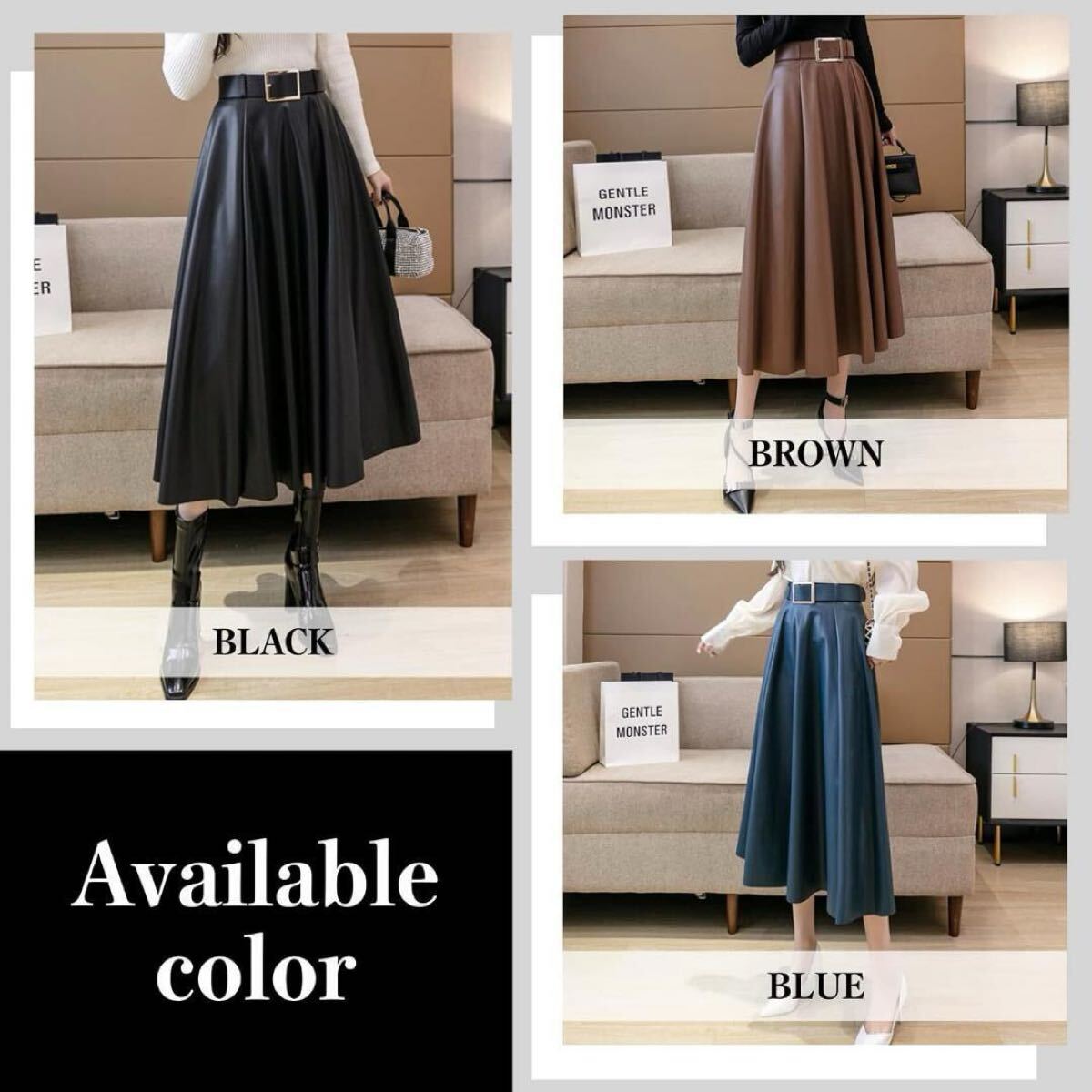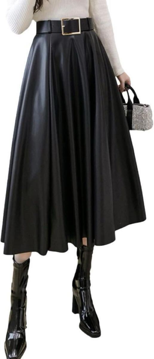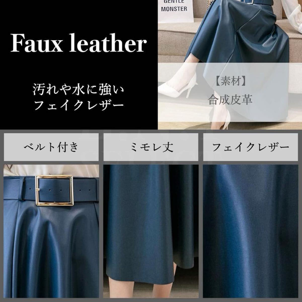 [ビーエヌワン セレクト] レザー スカート PU Aライン ミモレ丈 ベルト 付き レディース