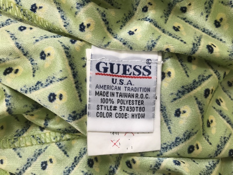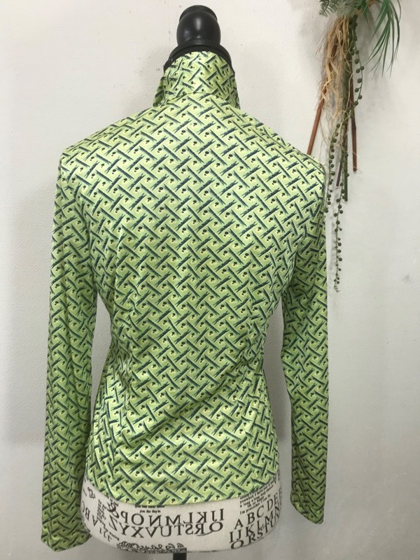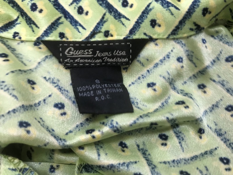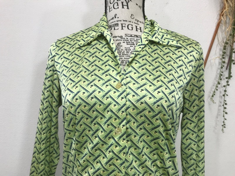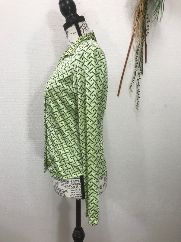 3658 レディース 【 Guess 】 エリ付き 長袖シャツ サイズ:S  色:グリーン柄入り