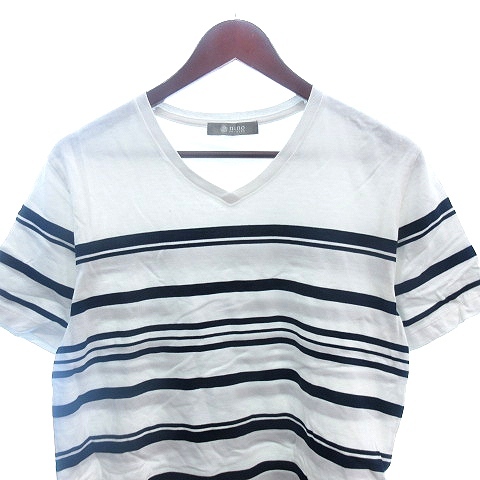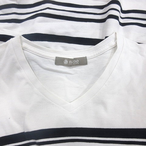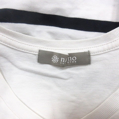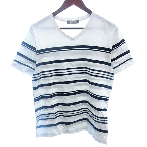 ナノユニバース nano universe カットソー Tシャツ Vネック ボーダー 半袖 M 白 ホワイト /AU メンズ