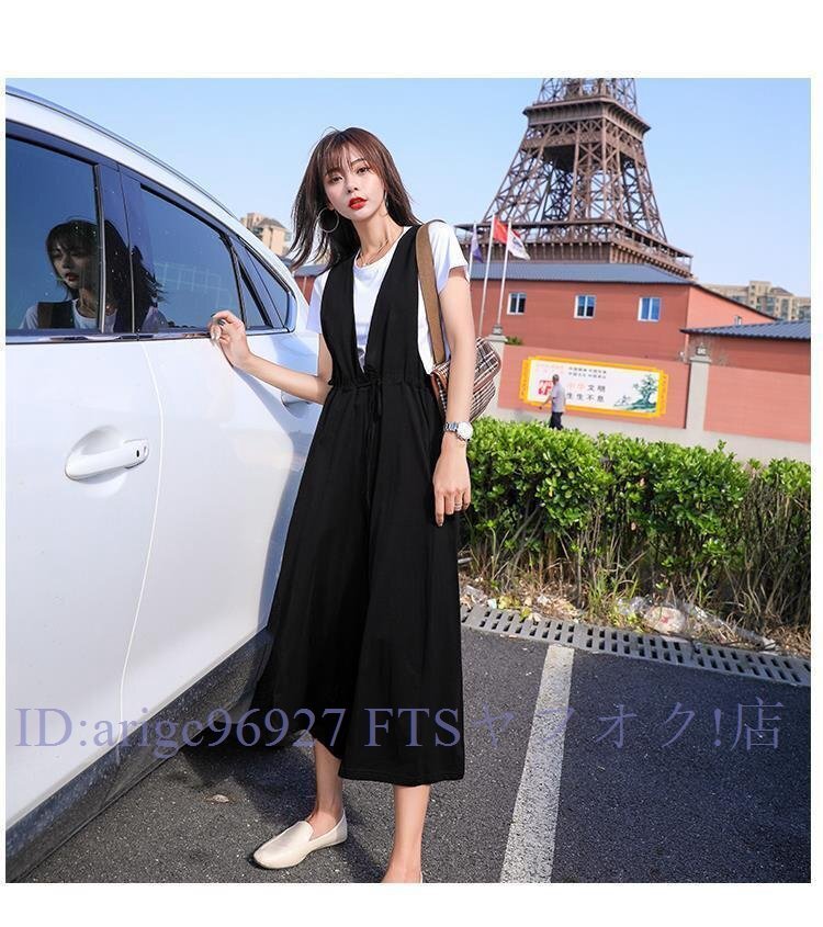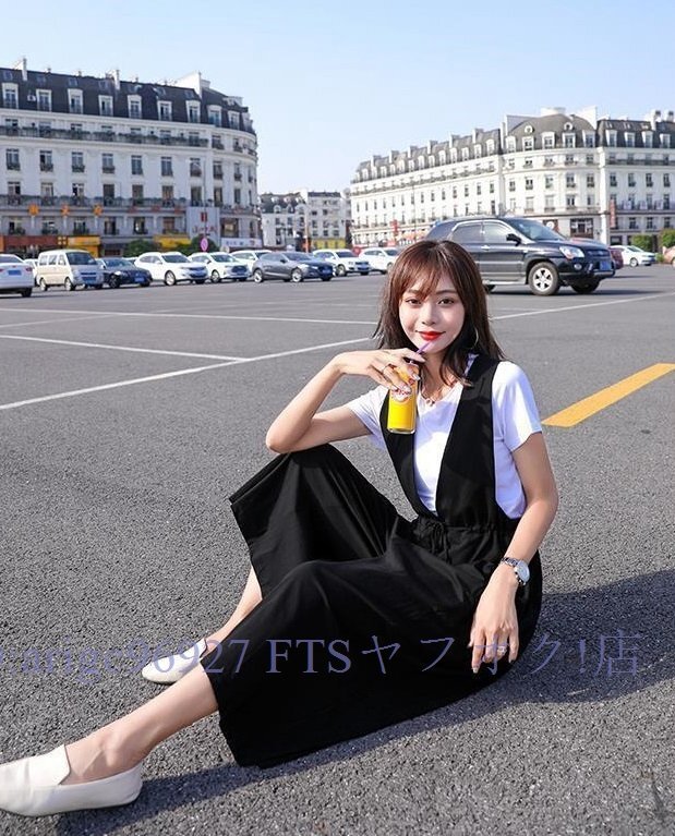 ★新品レディース オールインワン サロペット セット Tシャツ シャツ ワイドパンツ オーバーオール XL ホワイトお色選択可