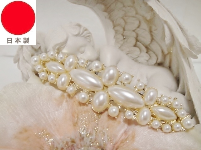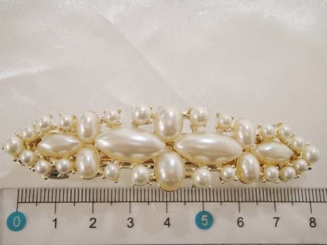 ♪ 新品 バレッタ 日本製『高品質/ロングサイズ/レクタングル/大パール』♪