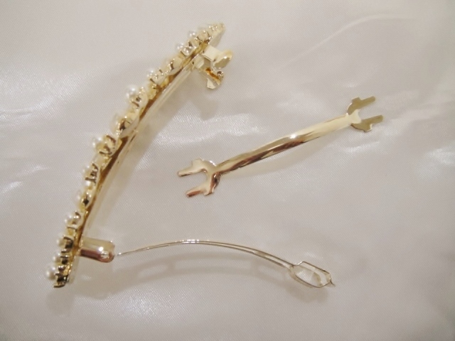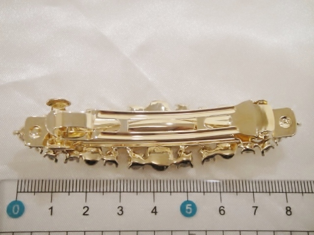 バレッタ本体、クリップ等にメッキ加工が施されておりますが経年劣化による色の変色が生じる場合がございます。
