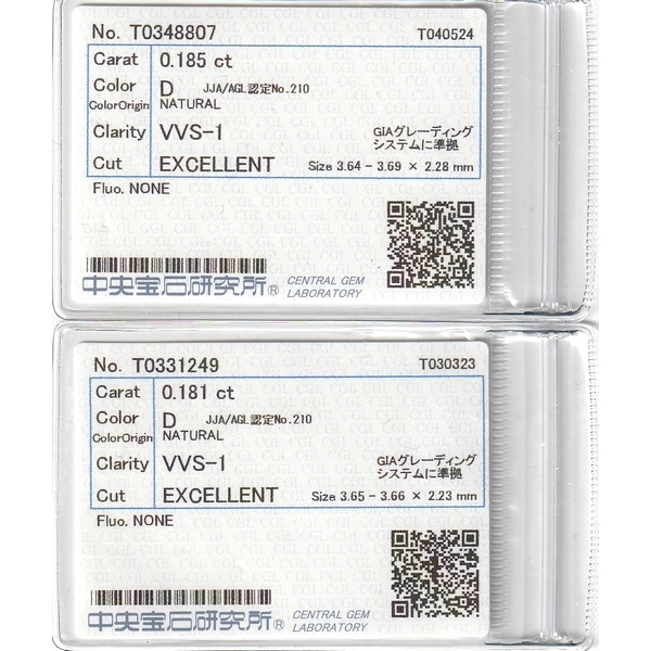 ダイヤモンドは、カラーレスグレードのDカラーで、顕微鏡でもインクルージョンの発見が困難なVVS1、EXCELLENTですので美しく輝きます。