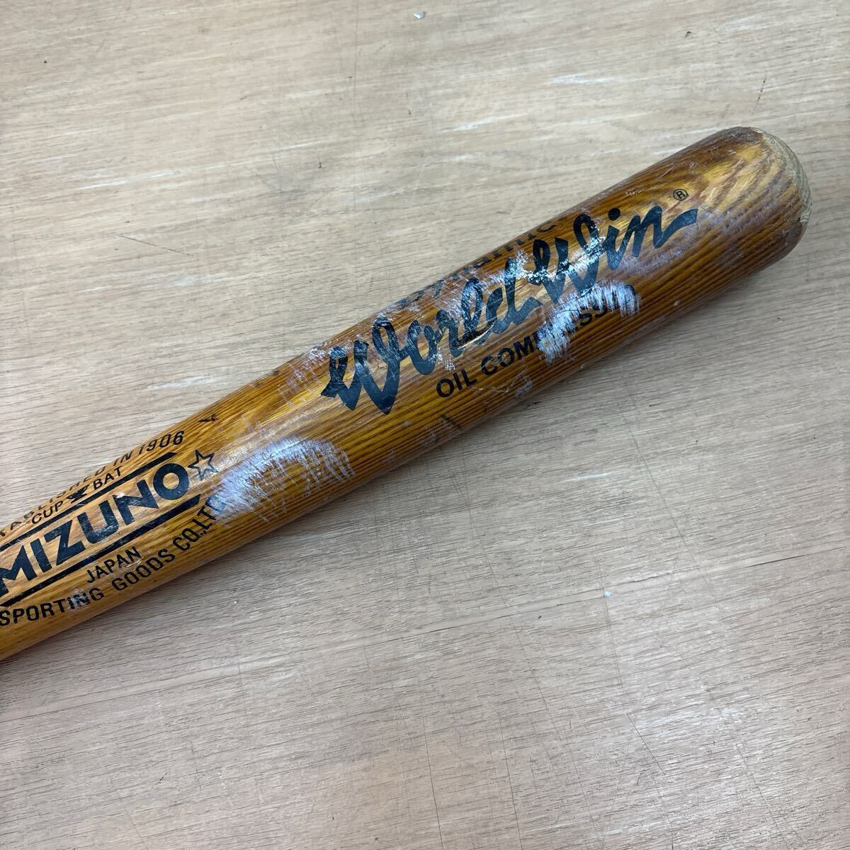 レア ミズノ MIZUNO WORLDWIN ワールドウィン DYNAMIC 赤カップ 野球用木製バット 約698g 薄くてわかりにくいですがカープ直筆サイン付