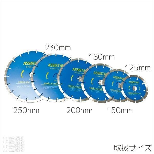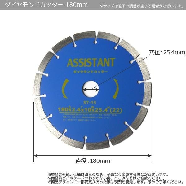 | 商品の詳細 | 最高級品Assistantのダイヤモンドブレード新品未使用です。 乾式で使用できますが、注水装備のついたエンジンハンドカッター機で注水して使用すれば切れ味、ライフが増します。 サイズ D180×H25.4×W10×T2.4(22 / 20リング付) 10枚入り(1セット) | |