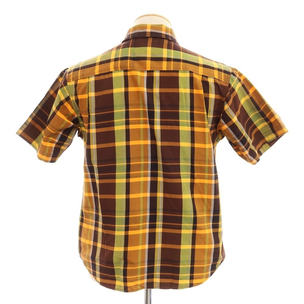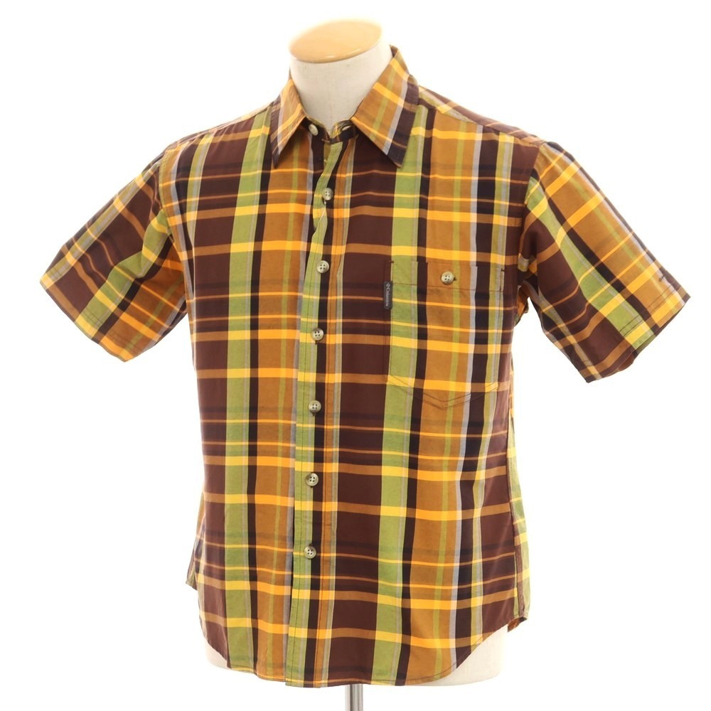 【中古】コロンビア Columbia ナイロン チェック レギュラーカラー 半袖シャツ オレンジ系xブラウン【S】 EPD