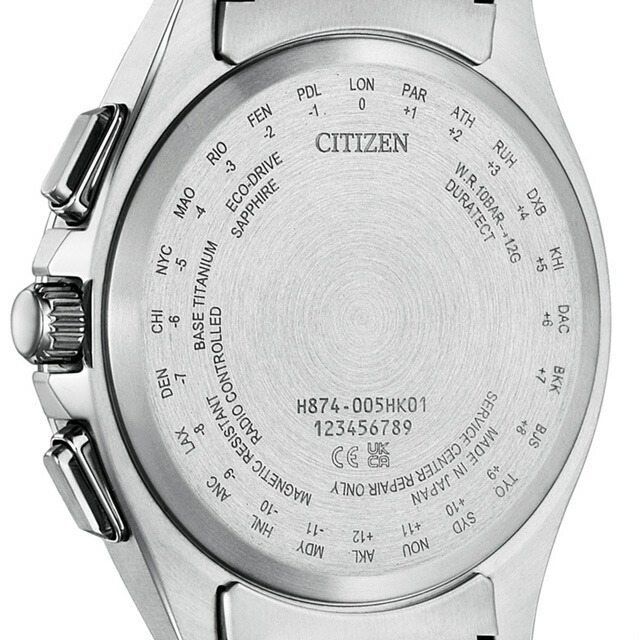仕様 | 日常生活用強化防水(10気圧) 平均月差±15秒(非受信時) デイ&デイト表示 24時間表示 月齢表示(ムーンフェイズ) 月齢自動計算機能 北・南半球月齢表示切替機能 パーペチュアルカレンダー 日中米欧電波受信 受信局自動選択機能 定時受信機能 強制受信機能 ワールドタイム機能(24時差) サマータイム機能 衝撃検知機能 針自動補正機能 充電量表示機能 充電警告機能 過充電防止機能 パワーセーブ機能 駆動期間:フル充電時約2.5年可動(パワーセーブ作動時) 耐メタル 耐磁1種 夜光(針+インデックス) フィットアジャスター 裏ぶたに都市表示を刻印 日本製 |