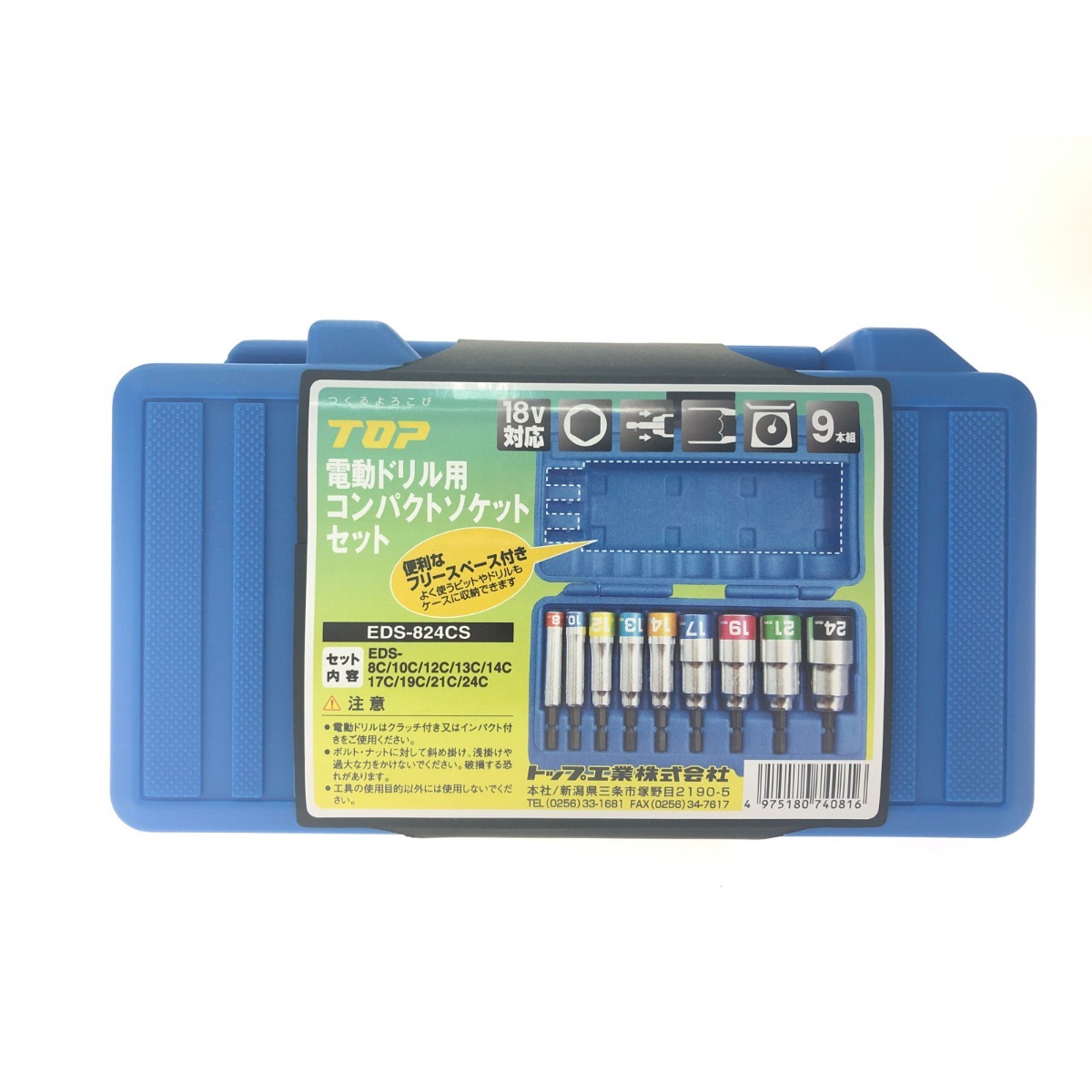 ▼▼ トップ工業 18V対応 電動ドリル用 コンパクトソケットセット 9本組 EDS-824CS 未使用に近い