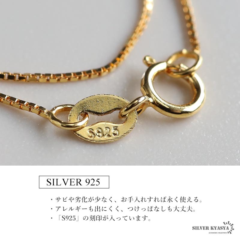 大人の魅力あふれるシルバー925素材を採用。「925」とは銀の含有率(純度)92.5%を示し、一般的に純銀として扱われます。サビや劣化等がほとんどなく金属アレルギーも出にくいとされており、アクセサリーとしての実用性もある金属です。