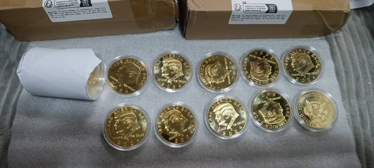 #輸入雑貨 今だけおまけ付きトランプ選挙勝利記念コイン 金貨限定版 金属製品【4センチ丸 金メッキ レプリカ 】 プラスチック クリアケース入り