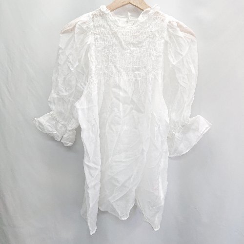 ◇ ⊂ Visdesu Aidesu ビスデスアイデス フリル 七分袖 シアーチュニック サイズF ホワイト レディース E