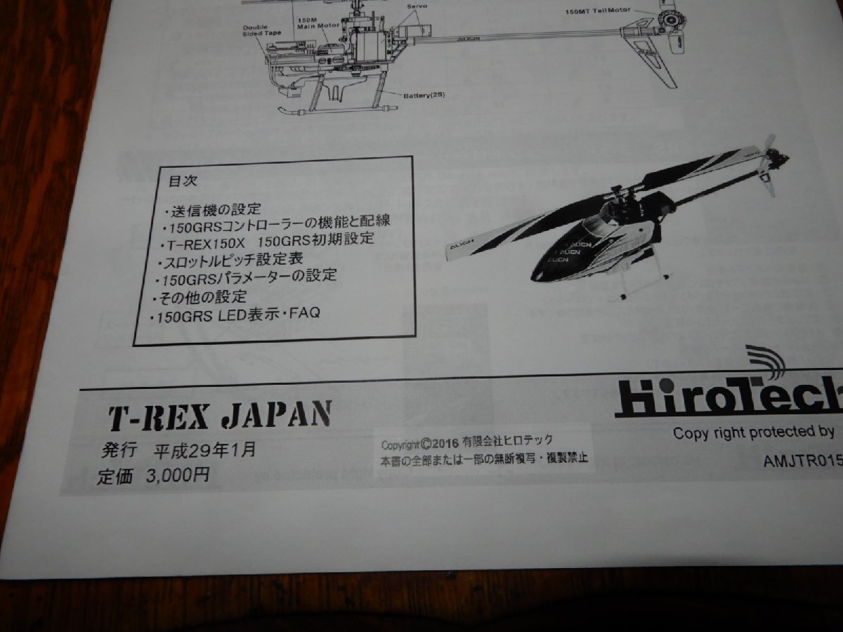 ☆☆T-REX150X 設定要領書☆レターパックライトにも対応しています。☆(F-4)