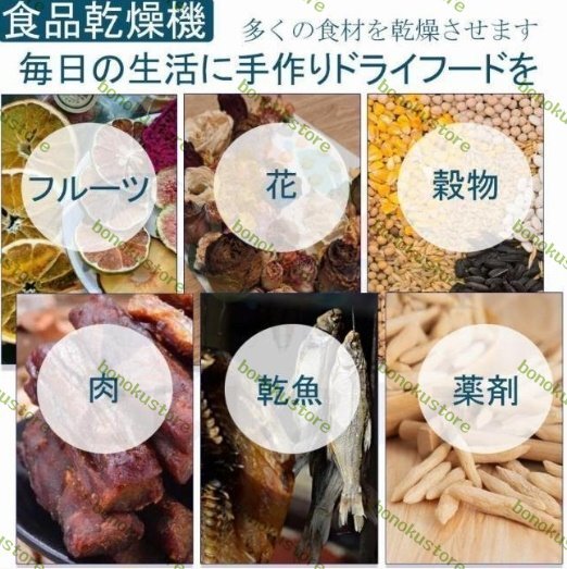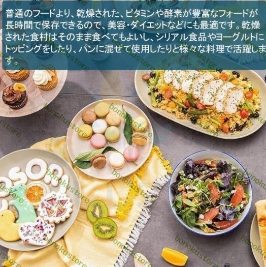 手軽に乾燥野菜やドライフルーツを作れます。家族の健康だけでなく、愛犬の健康まで守れる嬉しい商品です。音仕様のモーターを採用し、作動音は約45-50dB、夜間運転でも静かです。