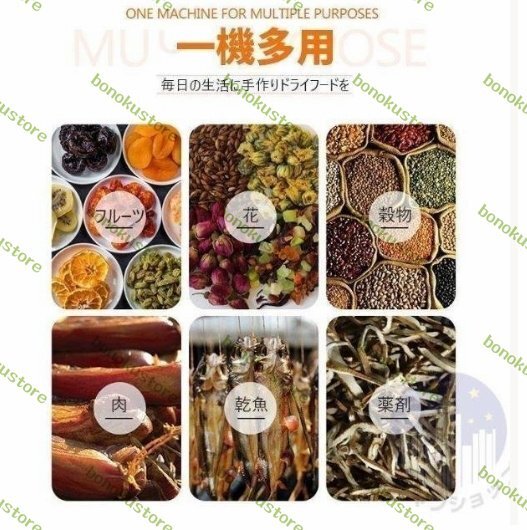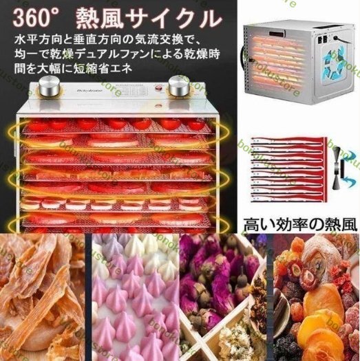 この食品乾燥機は食品グレード304ステンレス鋼で作れられ、耐熱、錆止め、洗い易い。何時間加熱にしても劣化しないし有害物質も出ません、もっと安全安心。プラスチック製フルーツドライヤーに比べて、ステンレス製の方が洗浄しやすいだけでなく、寿命も長いです。