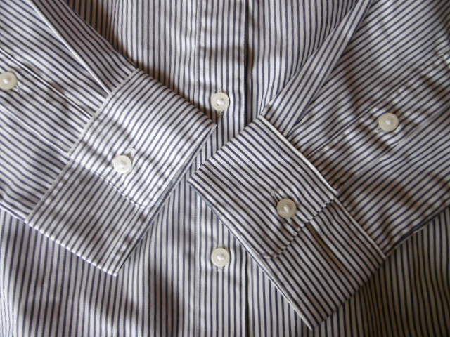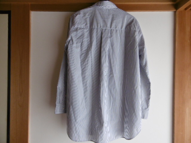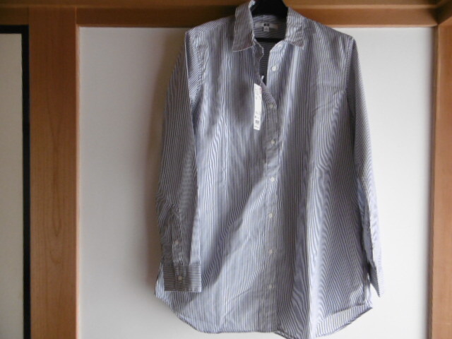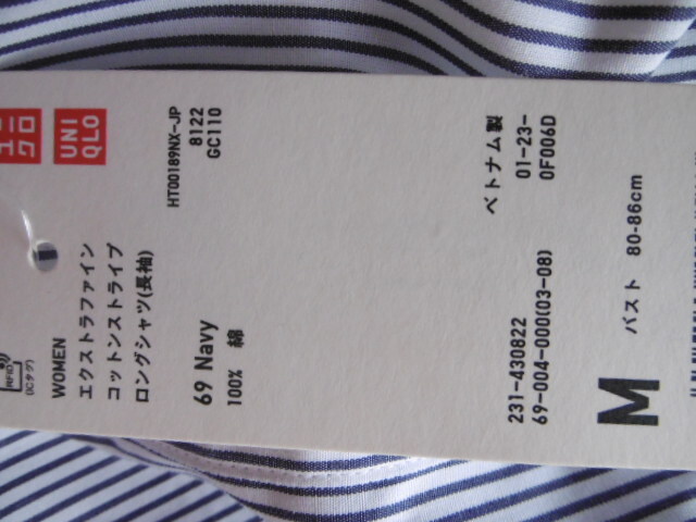 未使用 ユニクロ 長袖 エクストラファイン コットンストライプロングシャツ/ブラウス ネイビー 綿100 レディース Mサイズ