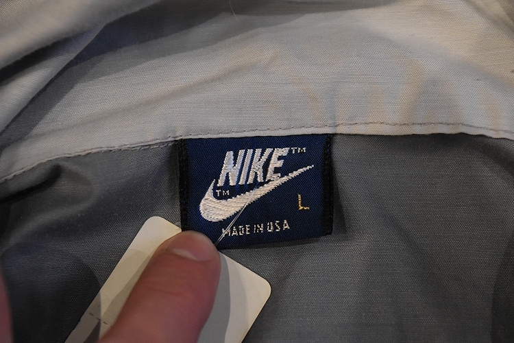 グッドカラーアイテム◎USA製80sビンテージNIKEナイキ ナイロンアノラックパーカージャケットLグレー灰色系アメリカ製アメカジt476