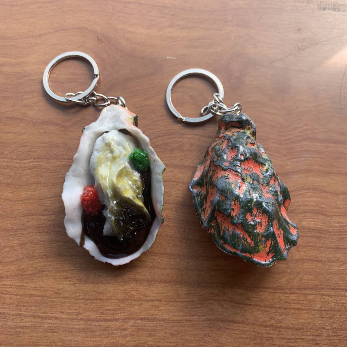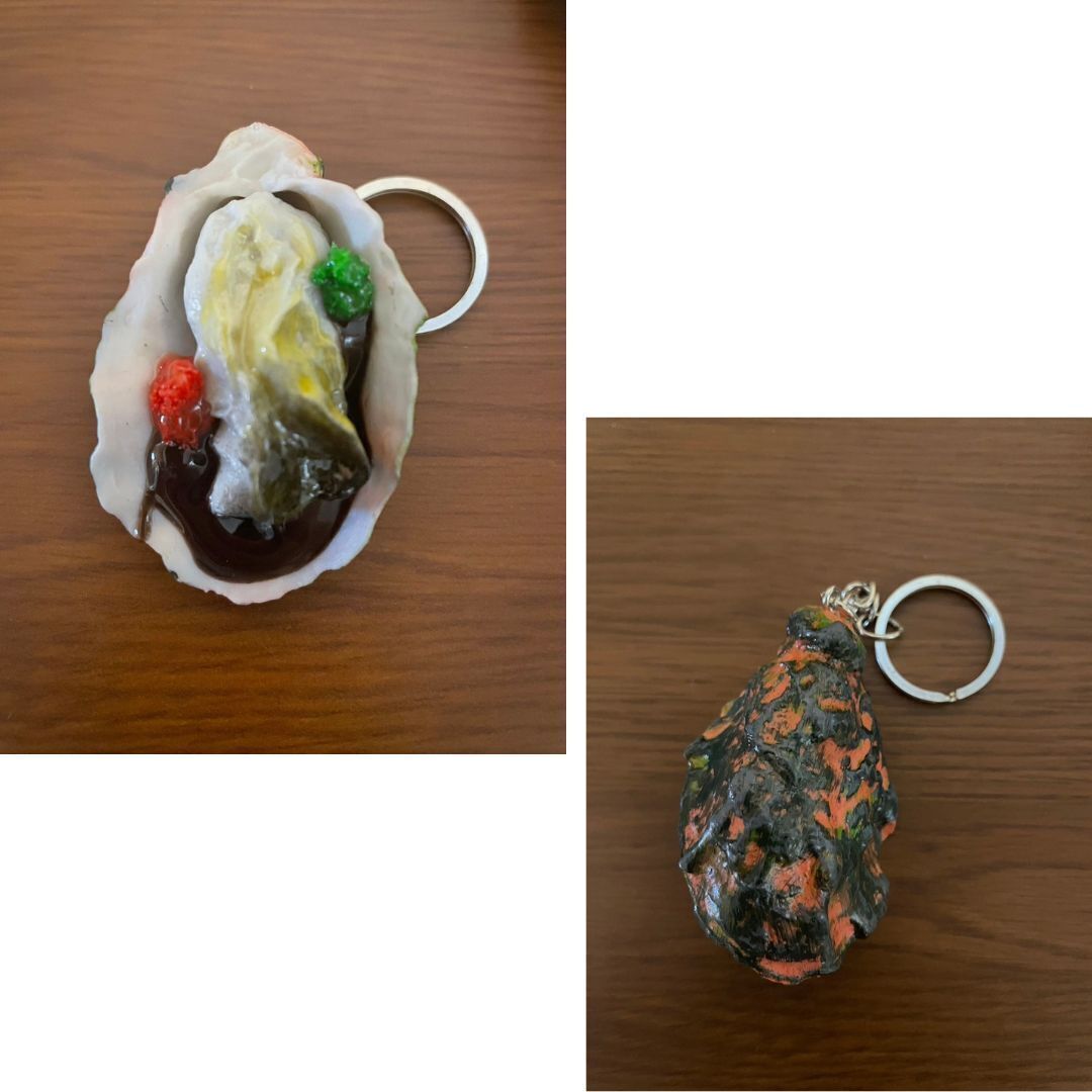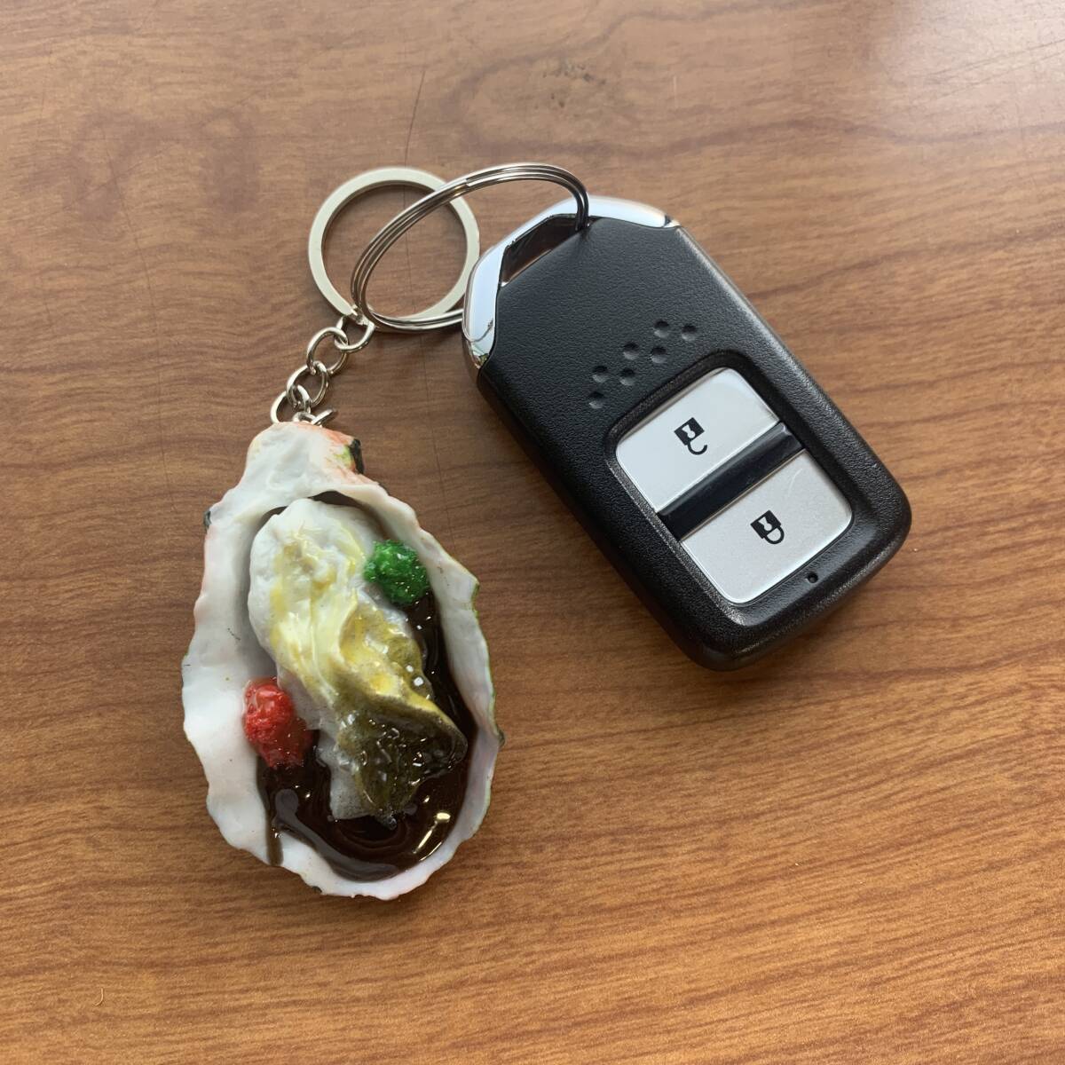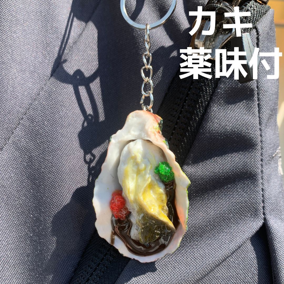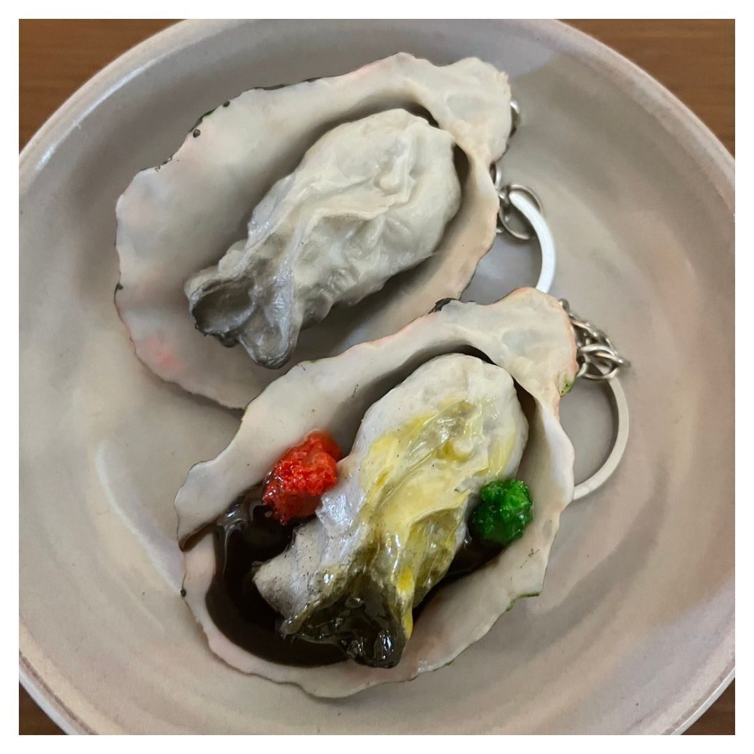 食品サンプル キーホルダー カキ 薬味付き かき 牡蠣 リアル 日本食 洋食 和食 ポーチ バッグ リュック キーリング ミニチュア ストラップ