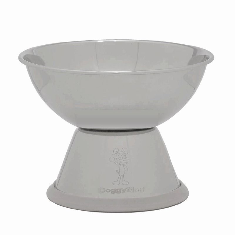 ステンレス製の洗えて割れない犬用背高食器。滑り止め付き