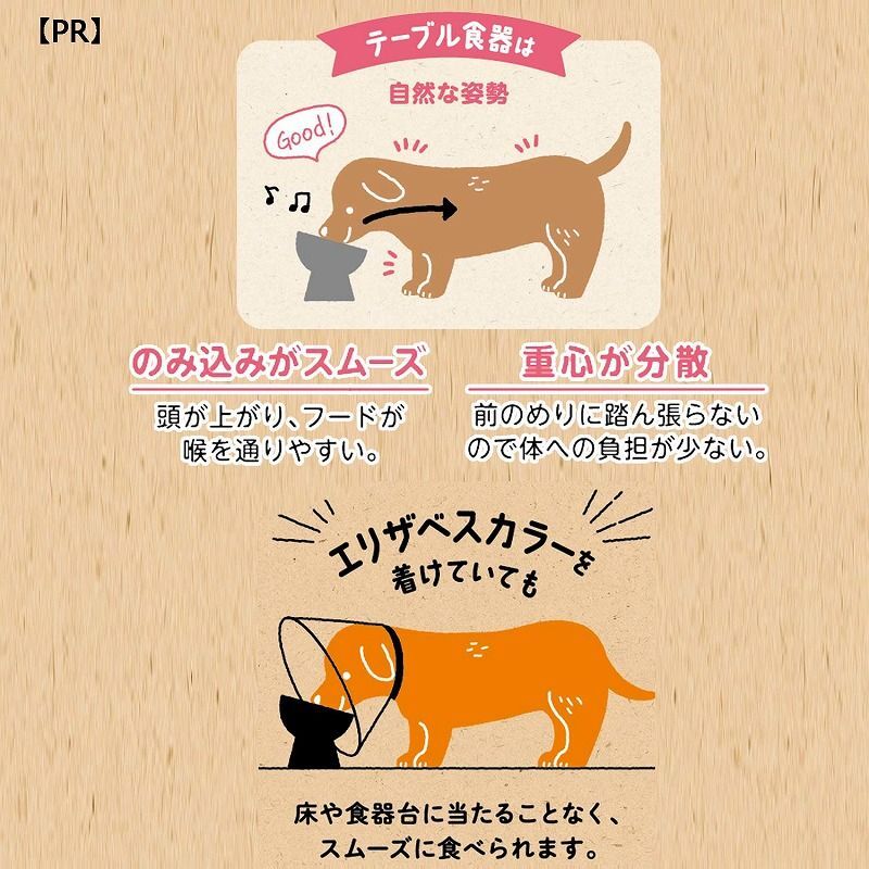ステンレス製だから割れない!洗いやすい!キズがつきにくくて衛生的な犬用の背高食器です。器の位置が高いので、わんちゃんにとって負担の少ない体勢でお食事ができます。食器の手前が低く、フードが中央に集まる器形状で食べやすい。専用食器台が不要です。滑り止めゴム付きで滑りにくく、床を傷つけません。シニアやエリザベスカラーをつけたわんちゃんにもオススメです。