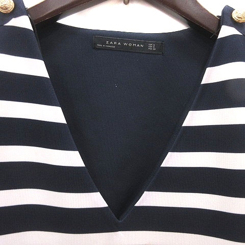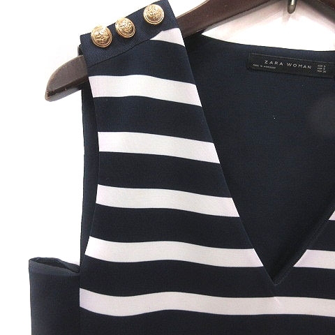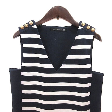 ザラウーマン ZARA WOMAN ワンピース ミニ ボーダー ノースリーブ S 紺 ネイビー 白 ホワイト /MS レディース