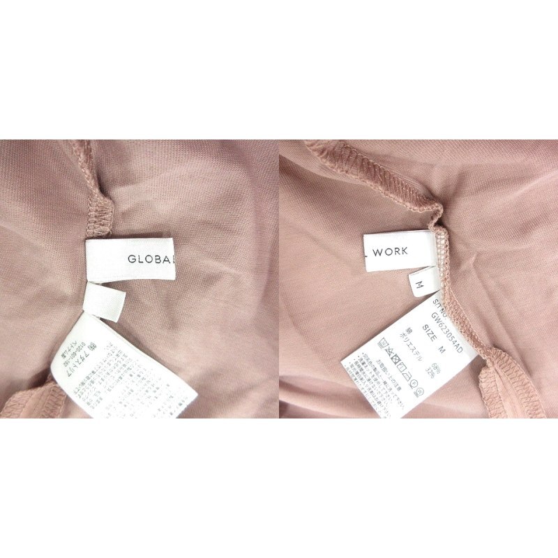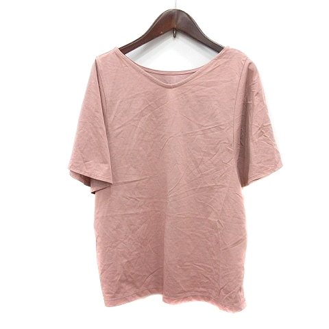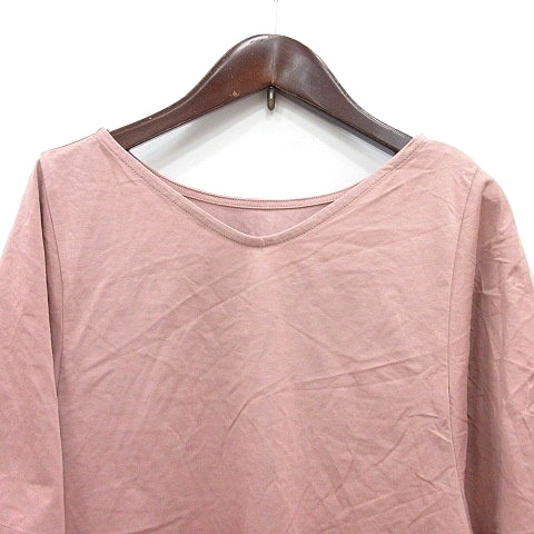グローバルワーク GLOBAL WORK カットソー Vネック 五分袖 M ピンクベージュ /MN レディース