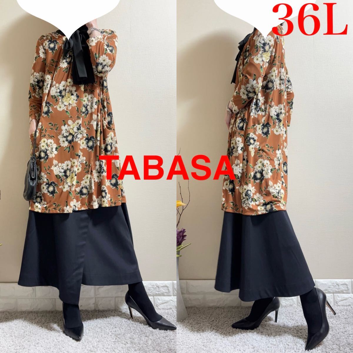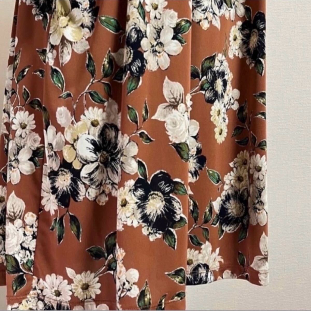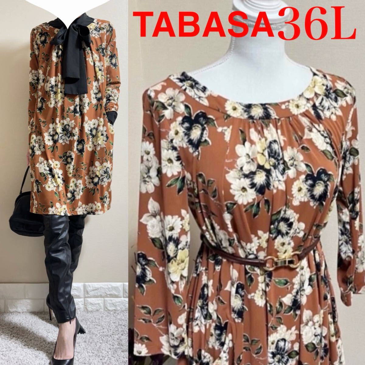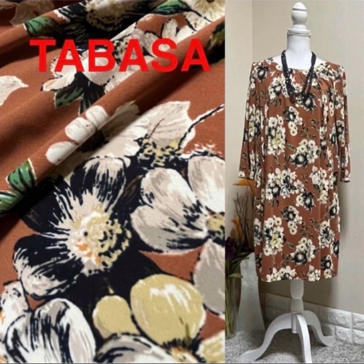 ふんわり優しい印象の花柄 ストレッチジャージー 7〜8分袖丈 チュニック ワンピース です