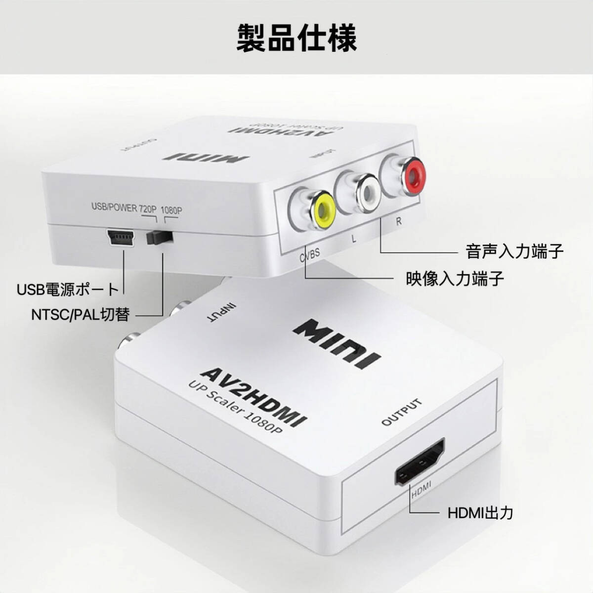 1080P対応 PAL/NTSC切り替え コンポジット入力をHDMI出力へ変換 AVケーブル 3色ケーブル アナログ AV出力対応のゲーム機、カメラ、VCR/STB/DVD/Blue-RayプレイヤーをHDMI対応のモニターやテレビやプロジェクターに接続できます ゲーム テレビ 車 ブラック ホワイト アナログAV 音声出力 カーナビ AV2HDMI