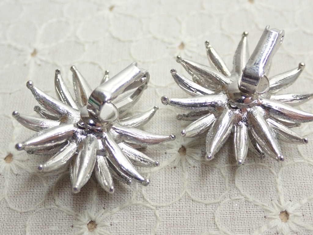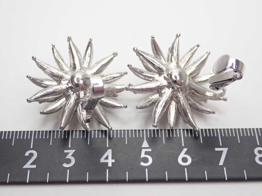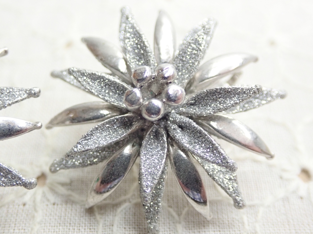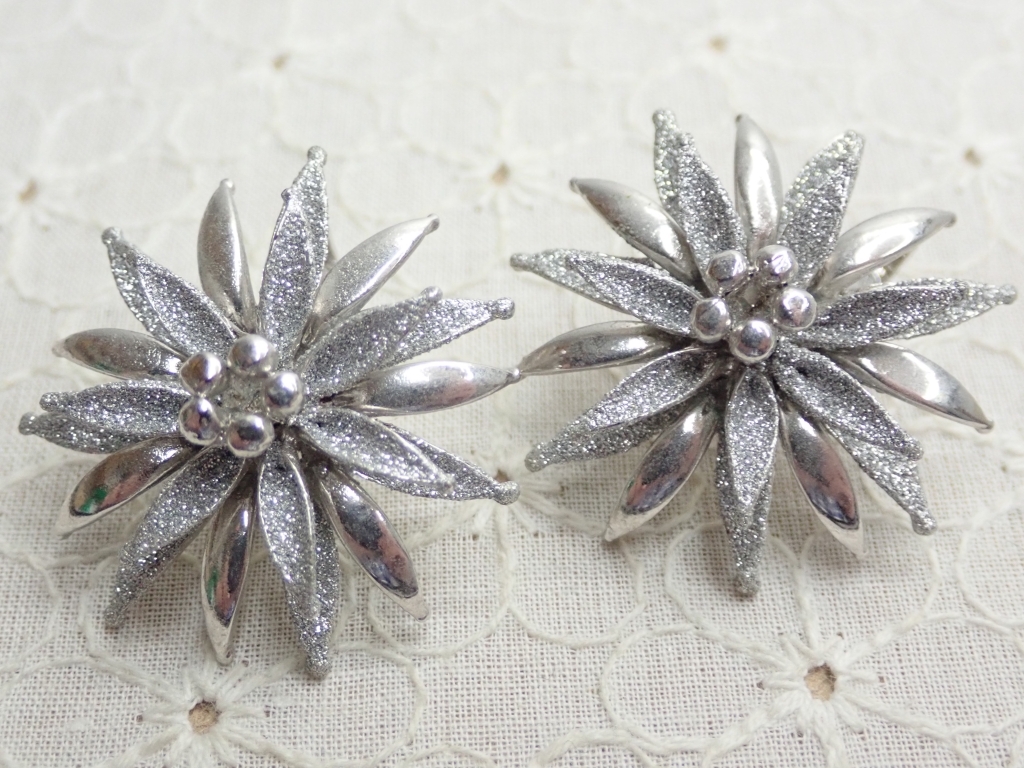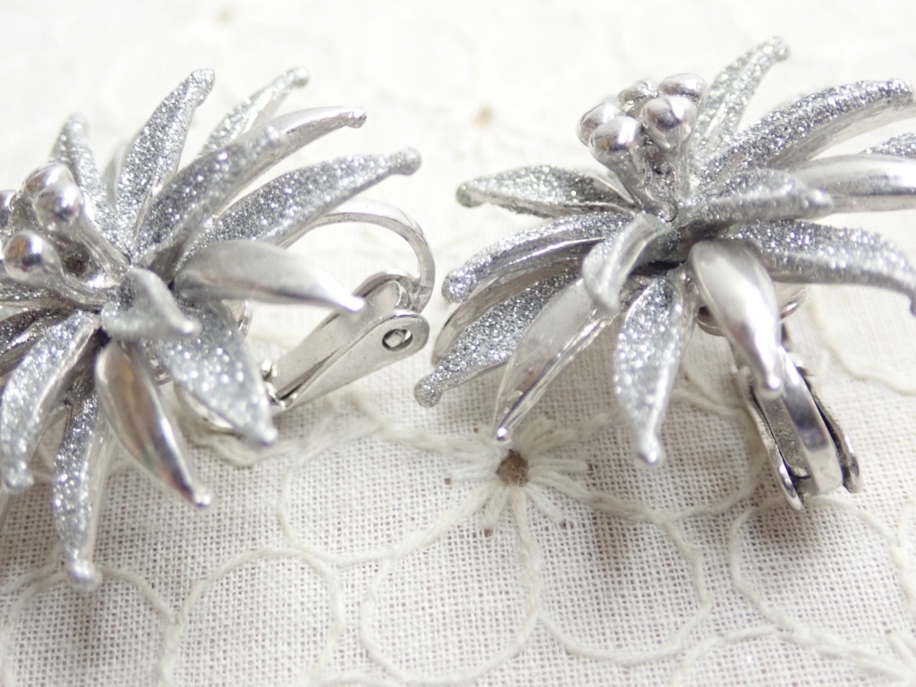 K577 ヴィンテージ イヤリング シルバーカラー フラワーデザイン アクセサリー Vintage Earrings